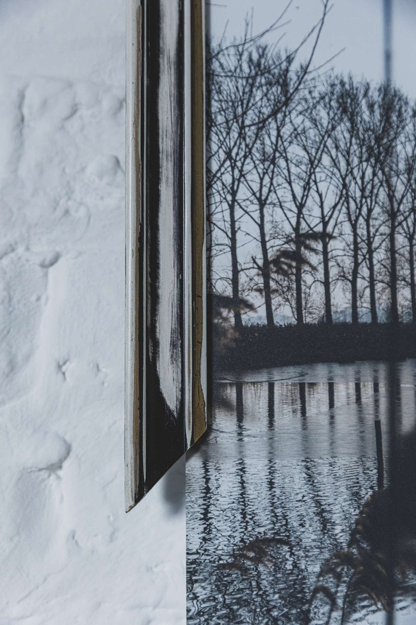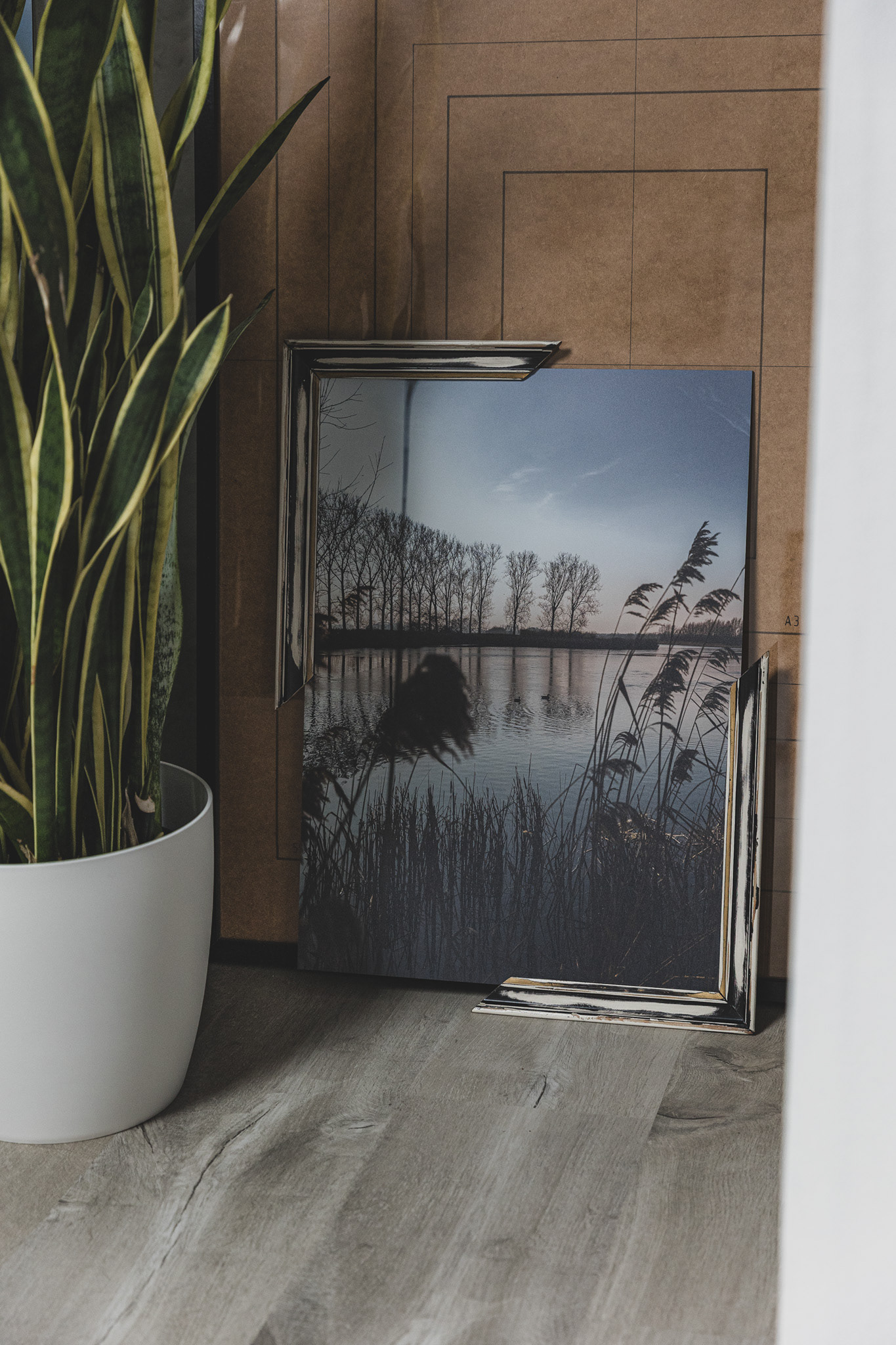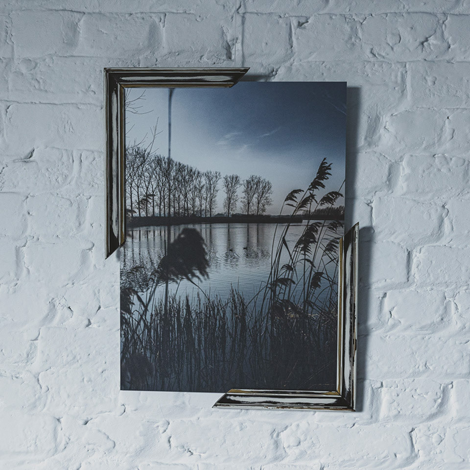 • Materiaal: Print op aluminium plaat + houten open kader
